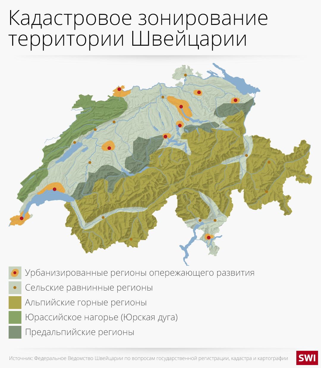 В стране нет единого центра, который высасывал бы все соки из регионов и где концентрировались бы все деньги и прочие ресурсы, а потому и люди. Но это уже политический вопрос, и совсем другая история. Как бы то ни было, в большинстве регионов Швейцарии по-прежнему с экономической и политической точек зрения выгоднее строить вдоль по горизонтали. Отсюда и парадокс: Швейцария страна маленькая, но живется в ней на удивление просторно.