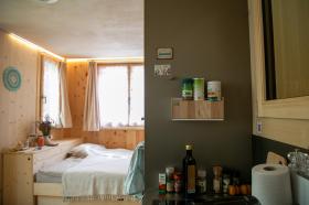 Ангела Бирхлер по образованию экобиолог (от «эко» — дом, среда, «био» — жизнь, «логия» — изучение, т.е. логика жизни человека внутри экологически чистой среды обитания), и поэтому она в этом смысле идеальная «подопытная». Она не просто проверяет, можно ли с комфортом жить в таком «Циклодоме» — она еще и квалифицированно отслеживает все «биостроительные» аспекты, такие, например, как интенсивность локального электрического и магнитного полей. Соответствующие измерения она проводит регулярно, не отрываясь, впрочем, от беседы с нами. Что больше всего нравится обитательницам этого экологического мини-дома? «Благодаря натуральным стройматериалам тут хороший микроклимат», — говорит Ангела.