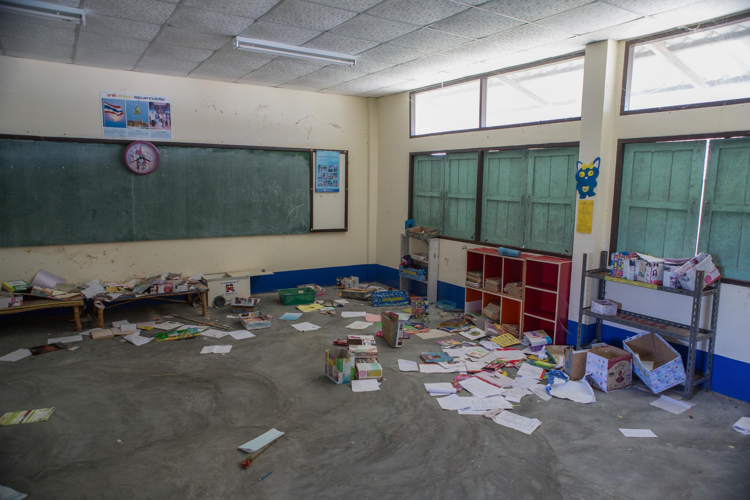 В центре этой деревни-призрака расположилось длинное здание на классических тайских сваях, школа, «построенная при поддержке швейцарского народа». Об этом напоминает черная табличка, прикрепленная к стене. Проект осуществлялся по линии Дирекции по сотрудничеству и развитию (DEZA), подразделения МИД Конфедерации, которая смогла привлечь в Таиланд примерно 3 млн. франков. Эти деньги, став частью настоящей «финансовой волны», накрывшей Таиланд, были потрачены, в частности, на восстановление пострадавших населенных пунктов.