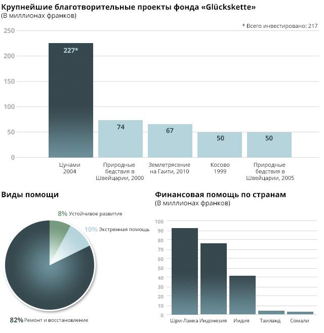 В Швейцарии эта трагедия вызвала повсеместный общественный подъем. Один только швейцарский гуманитарно-благотворительный фонд «Glückskette» («Chaîne du Bonheur») собрала пожертвований на 227 млн. швейцарских франков, что в почти в четыре раза превышало сумму, собранную ею же после землетрясения на Гаити в 2010 году.