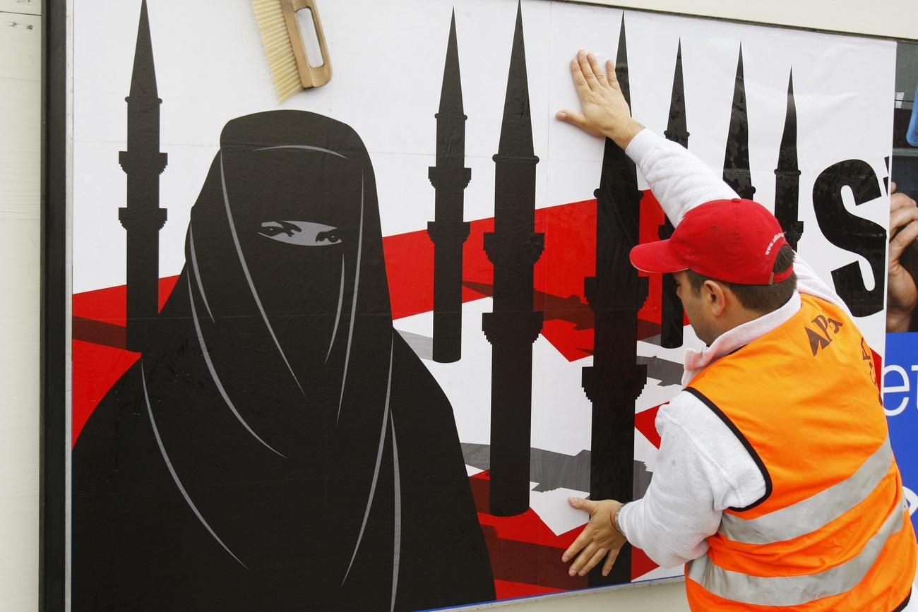 Такими плакатами накануне голосования по антиминаретной инициативе были увешаны все города Швейцарии. Фото: октябрь 2009 года. Keystone / Steffen Schmidt