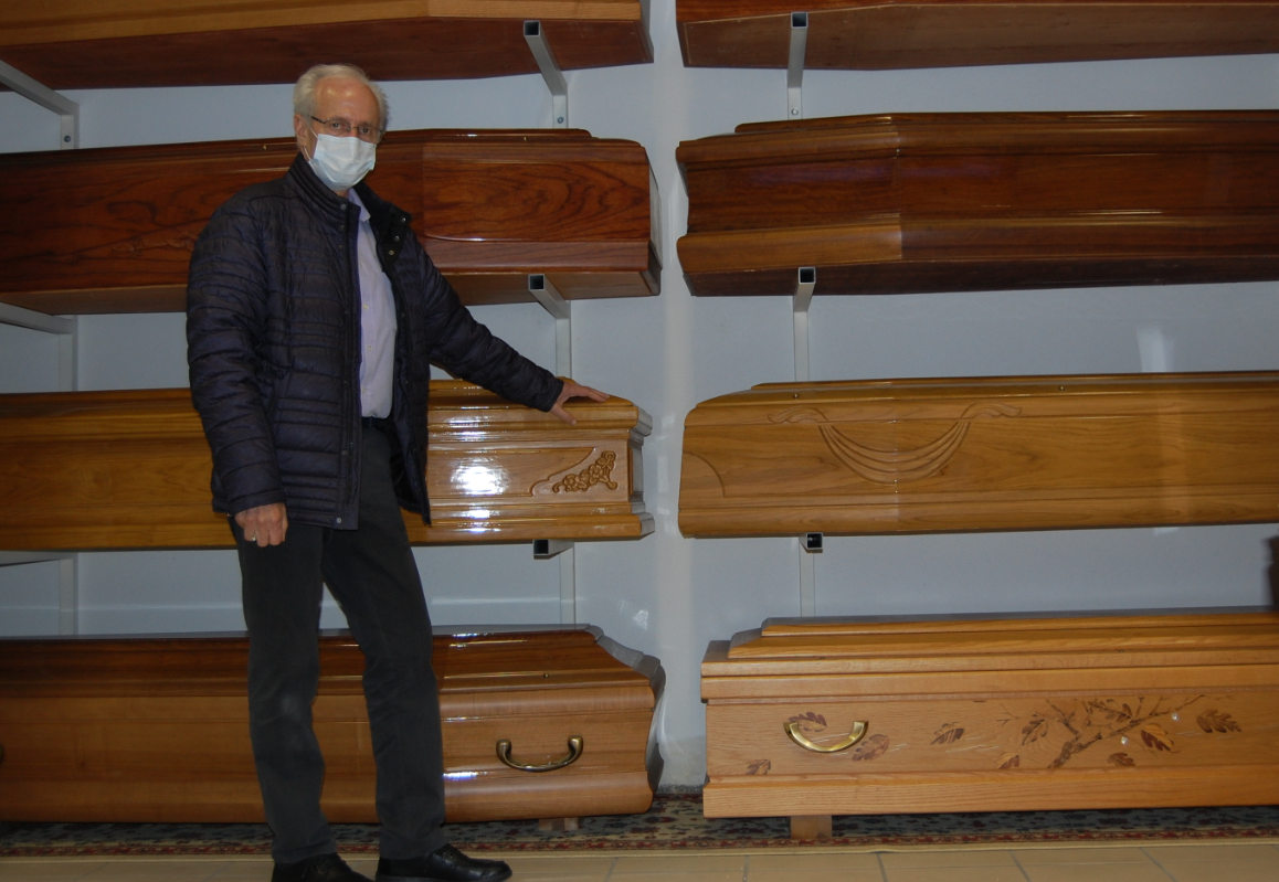 Эрос Бруски принимает нас в рабочем кабинете и охотно делится своим опытом и впечатлениями. Он говорит о невыносимой боли, которая заставляет родственников усопшего просто каменеть в момент прощания с покойным. Как проходят похороны во времена пандемии коронавируса? Да еще в Тичино? Эрос Бруски говорит, что в соответствии с карантинными мерами, принятыми в качестве мер противодействия пандемии, на похоронах сейчас имеют право присутствовать только самые близкие родственники.