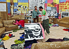 En la exposición se observa a un hombre que orina sobre un retrato del ministro suizo de Justicia, Christoph Blocher, y papeletas para votar con imágenes de iraquíes torturados.