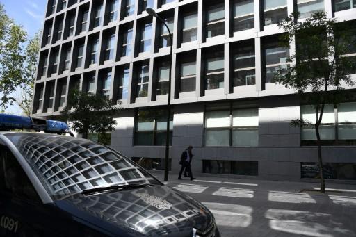 Un coche de la policía española permanece estacionado frente a la sede de la Audiencia Nacional, en Madrid, el 22 de agosto de 2017 afp_tickers
