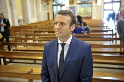 El candidato presidencial francés Emmanuel Macron visita la Basílica de Nuestra Señora de África, en Argel, el 14 de febrero de 2017 afp_tickers