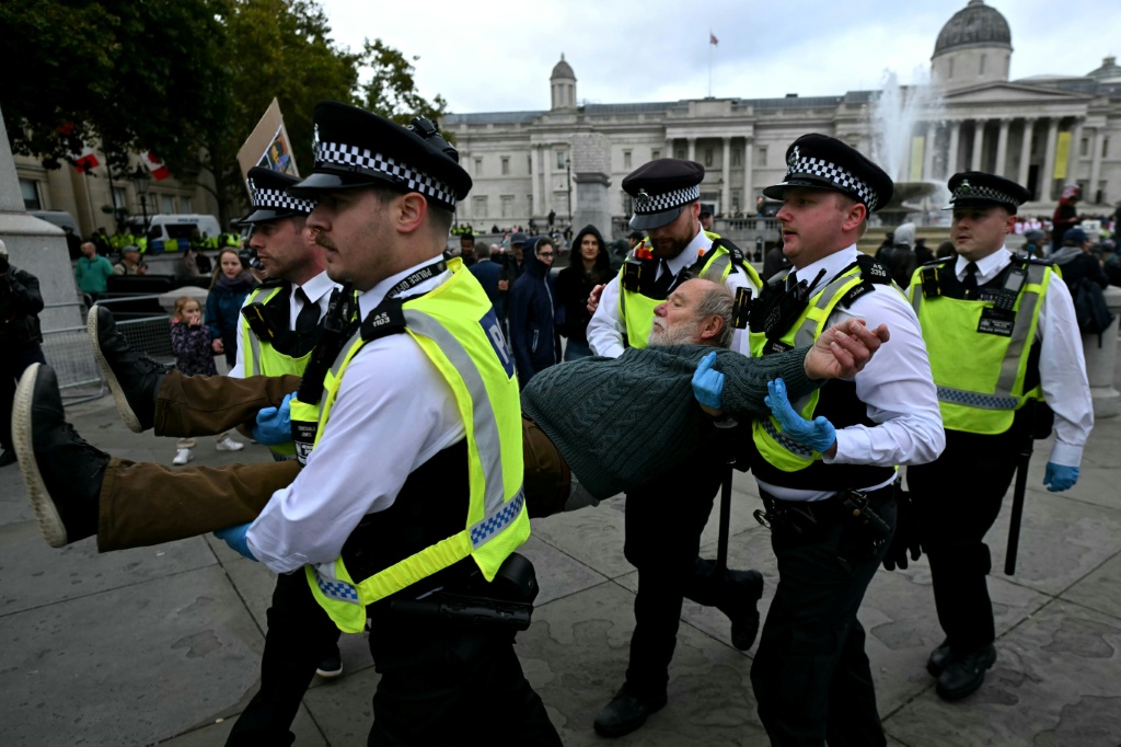 Ochenta y seis personas fueron detenidas por supuesta intrusión después de que un grupo de manifestantes irrumpiera en el recinto de una cárcel londinense en apoyo a un preso en huelga de hambre, indicó la policía británica este domingo.