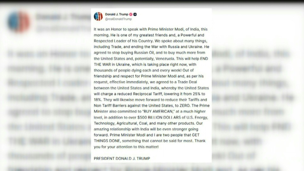 El presidente estadounidense, Donald Trump, anunció el lunes que llegó a un acuerdo comercial con India, tras una conversación con el primer ministro Narendra Modi, quien, según el republicano, se comprometió a dejar de comprar petróleo ruso.