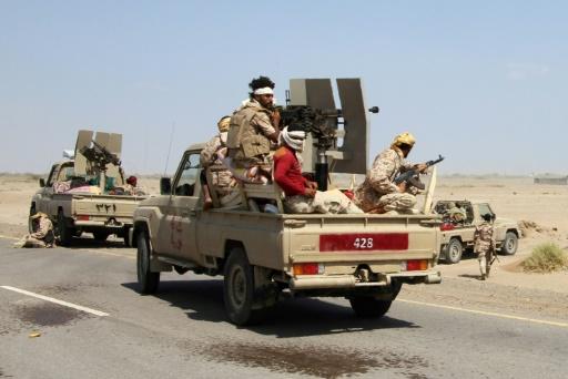 Las fuerzas gubernamentales yemeníes circulan por una carretera en dirección a la ciudad portuaria de Moca el 23 de enero de 2017 afp_tickers