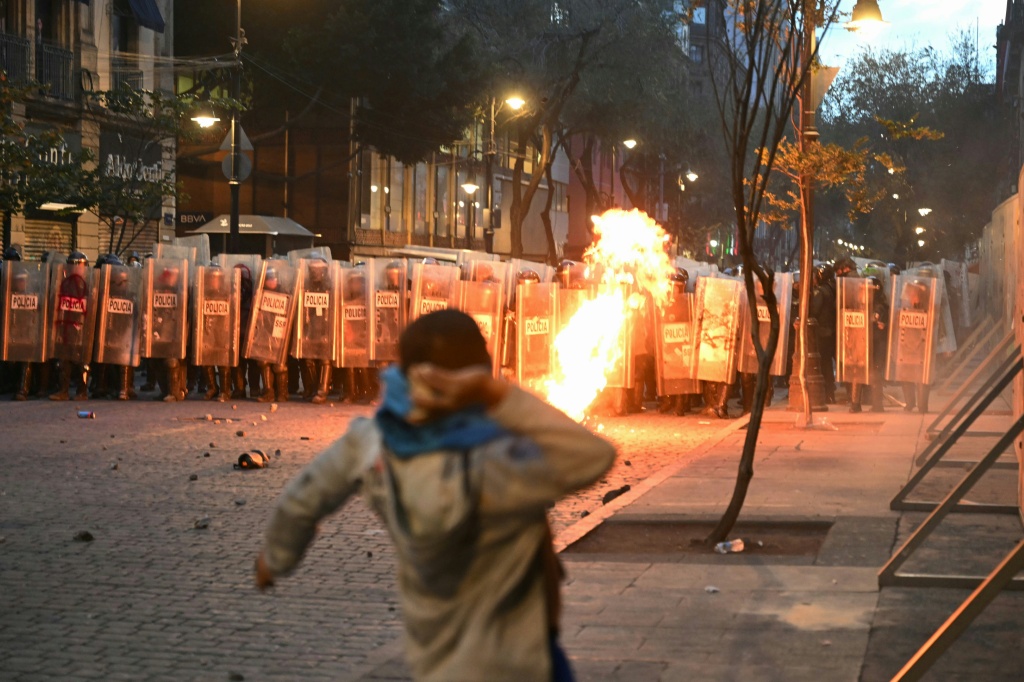 Los choques más intensos ocurrieron en el Zócalo, la plaza principal de la capital, donde más de un centenar de manifestantes se enfrentó por casi una hora, lanzando piedras y otros objetos a distancia, contra los policías.