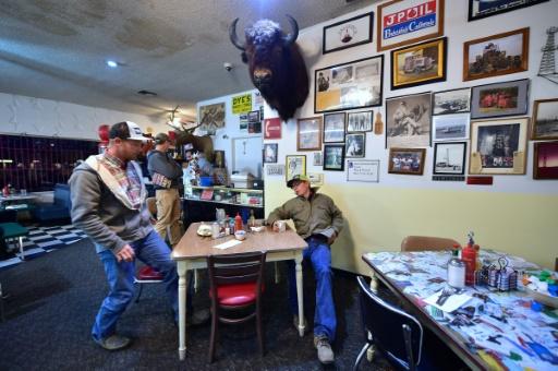Son las 5 y media de la mañana y hay mucho movimiento en este establecimiento decorado con fotos de plataformas petroleras, logotipos de estaciones de servicio y bisontes disecados.