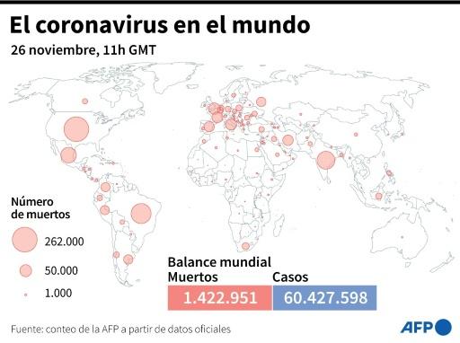 Desde el comienzo de la epidemia más de 60.427.590 personas contrajeron la enfermedad. De ellas al menos 38.532.900 se recuperaron, según las autoridades.