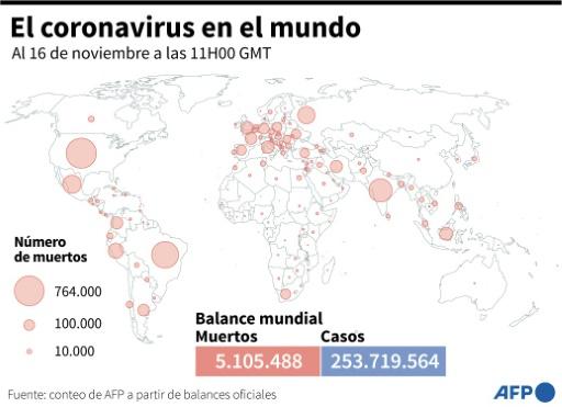 Balance mundial de la pandemia de covid-19 el 16 de noviembre a las 11H00 GMT