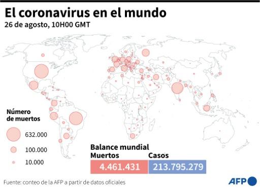 Balance mundial de la pandemia de covid-19 el 26 de agosto a las 10H00 GMT