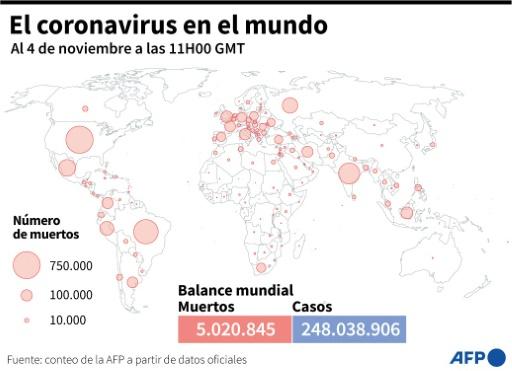 Balance mundial de la pandemia de covid-19 el 4 de noviembre a las 11H00 GMT