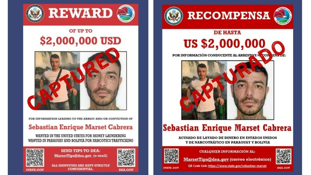 Marset, de 34 años, era considerado uno de los capos de la droga más buscados del Cono Sur. Circulaba además entre Venezuela, Brasil y Paraguay. El Departamento de Justicia estadounidense ofrecía una recompensa de 2 millones de dólares por información sobre él, tras acusarlo de movilizar al menos 16 toneladas de cocaína.