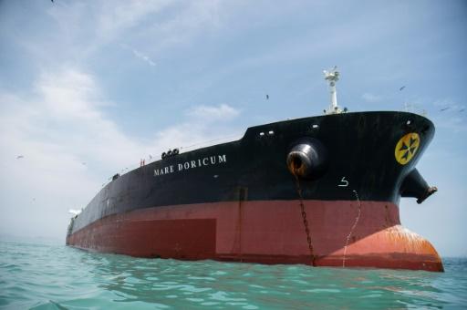 Decenas de gaviotas descansan en la cubierta color verde y en las barandas del tanquero de 274 metros de eslora, que tiene capacidad para transportar casi un millón de barriles de petróleo.