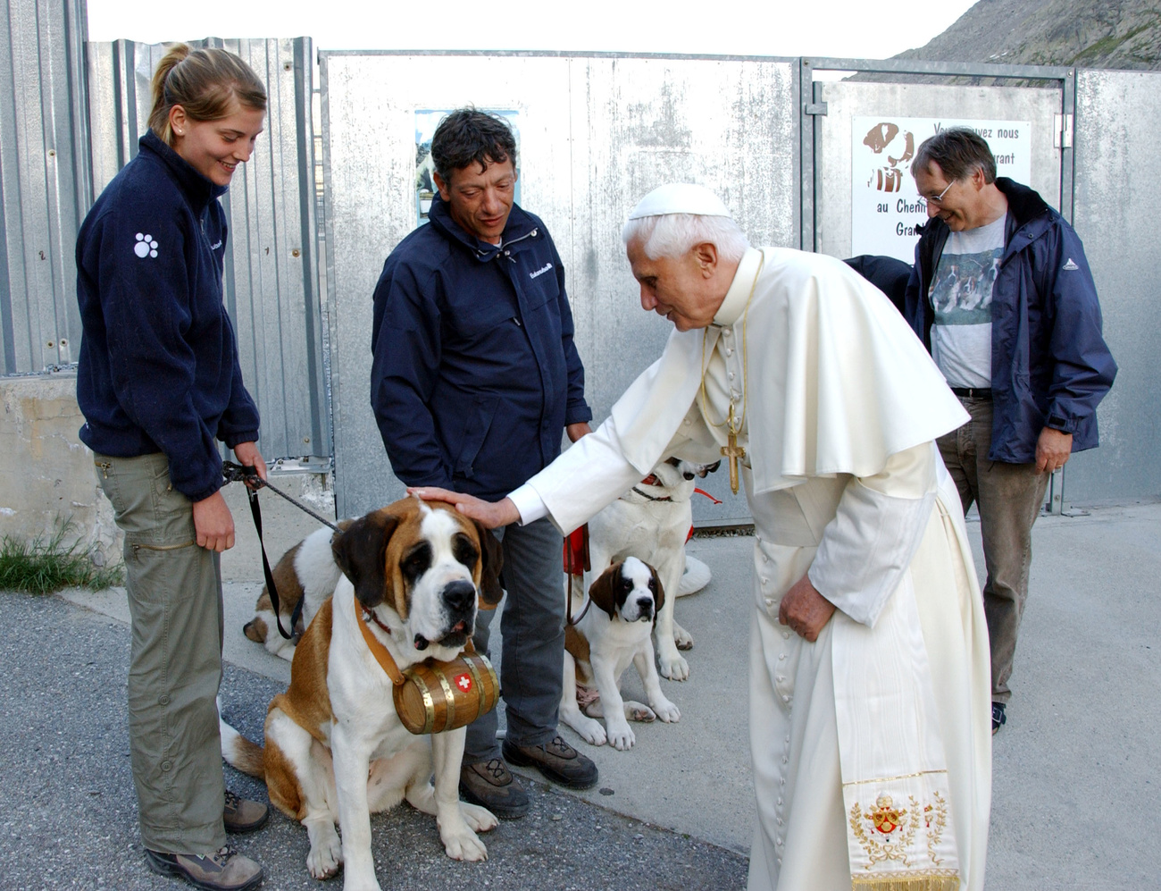 Benedicto XVI visitó también el famoso criadero de San Bernardo del hospicio. Los monjes lo habían gestionado hasta 2005, cuando fue vendido a la «Fundación Barry».