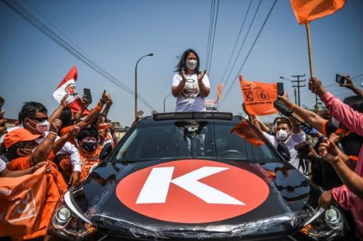 A bordo de una camioneta negra, Keiko y su hermana menor, Sachi, recorrieron distritos del norte y el sur de la capital peruana, donde decenas de seguidores con mascarillas la esperaban con camisetas naranjas, banderas y carteles en los que se leía «Keiko presidenta».