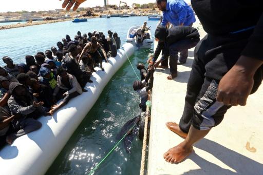 Migrantes clandestinos a su llegada a la costa libia tras intentar llegar a Europa cruzando el mar Mediterráneo, el 18 de mayo en Guarabouli, a 60 kilómetros al este de Trípoli, el 18 de mayo de 2017 afp_tickers