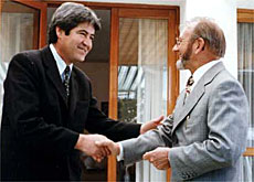 Walter Bopp (izda) con José Luis Paredes, alcalde de El Alto. Embajada suiza Bolivia