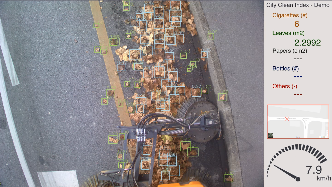 El equipo conjunto es colocado en el exterior de un vehículo que debe desplazarse lentamente -más o menos a la velocidad de una bicicleta o de una máquina barredora-, lo que le permite captar imágenes de todos los desechos que hay en las calles, los analiza, clasifica y envía un balance informativo al usuario.