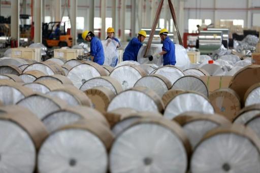 Unos operarios trabajan en una planta de producción de aluminio en Huaibei, en el este de la provincia china de Anhui, el 20 de mayo de 2017 afp_tickers