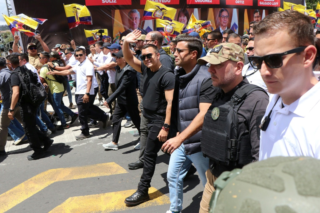 «Nuestros policías, nuestros militares se sienten desprotegidos, se sienten abandonados por una Corte Constitucional que ha decidido darles la espalda», dijo Noboa, megáfono en mano.
