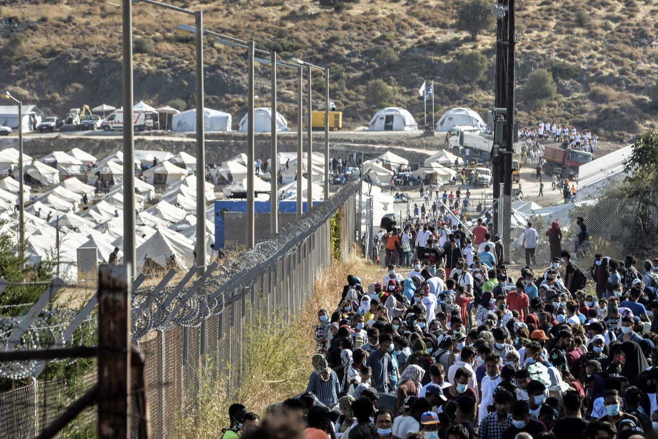 Como respuesta al incendio que dejó sin techo a unos 12 500 migrantes, la Confederación envió rápidamente al lugar equipos esenciales y además personal experto en situaciones extremas (el Cuerpo de Ayuda Humanitaria Suizo). Su misión ha consistido en restablecer el acceso al agua potable y brindar apoyo para reducir al máximo los riesgos para la salud durante este período de coronavirus. Así, Suiza llevó a Lesbos cinco toneladas de material de socorro (tiendas, generadores, depósitos de agua, etc.). Y la Agencia Suiza para el Desarrollo y la Cooperación (COSUDEEnlace externo) también distribuyó cerca de 40 000 mascarillas protectoras al hospital principal de la isla. Una acción humanitaria que finalizó el 30 de septiembre y que ha supuesto el restablecimiento del acceso al agua potable para unas 10 000 personas.