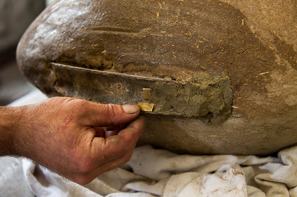 La campana es recubierta de arcilla. Se colocan casquillos de latón, cobre y zinc entre el cencerro y el manto de arcilla. Cuanto más grueso es el metal, más alto es el tono. La aleación de acero también juega un papel importante y asegura que el metal se procese de manera uniforme. El resto es confidencial. No hay dos cencerros que se vean o suenen igual.