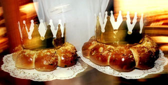 La corona sobre el tradicional pastel de los Reyes Magos. swissinfo.ch