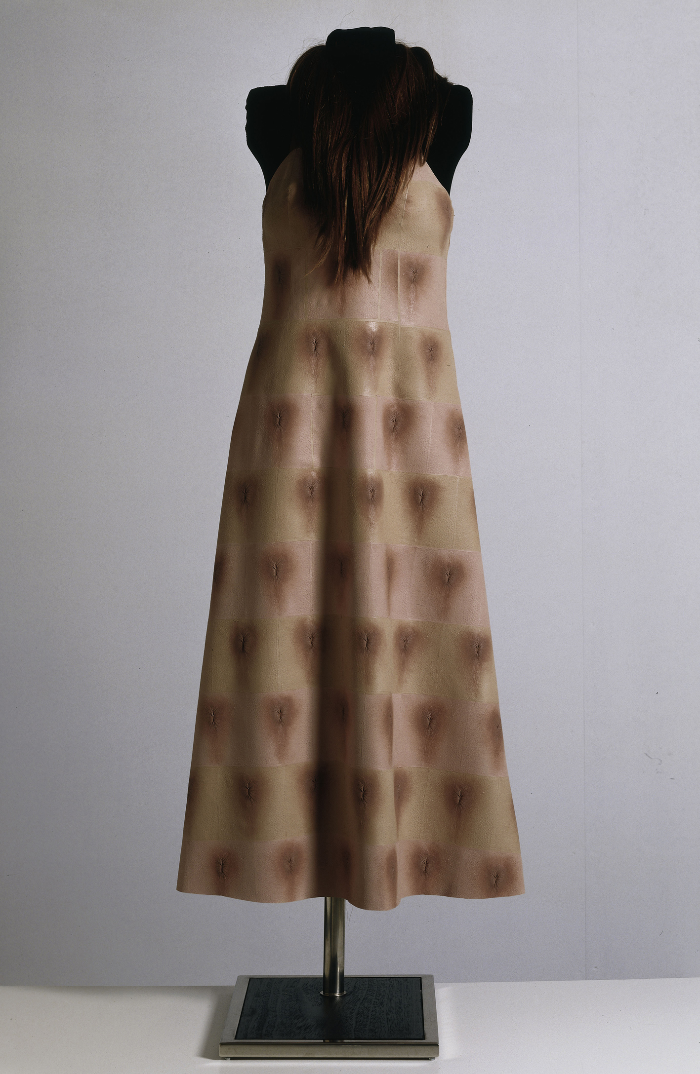 Vestido de la serie Peletería con piel humana', silicona, calcos de piel, pezones, orificios anales, ombligos y pelo natural, 2006.