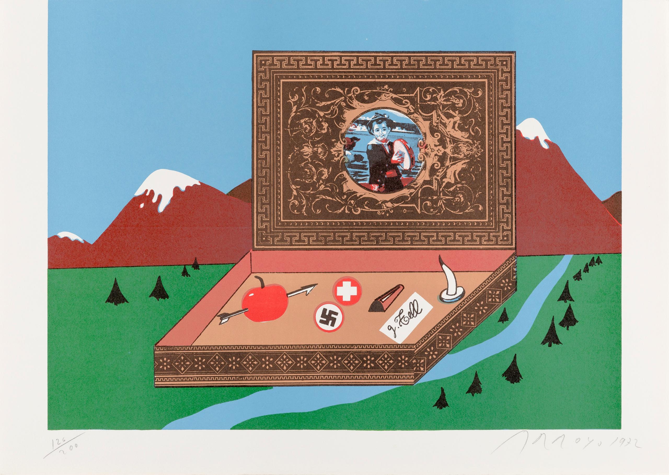 También pasaba tiempo en Berna, pues había una escuela de boxeo célebre en aquellos tiempos que me interesaba mucho y con la que hicimos algunos proyectos. Además, me encantan las salchichas y el chocolate, por eso los incluyo en mis cuadros, así como a Guillermo Tell, los bancos, ciervos y naturalmente los Alpes: todas metáforas de Suiza.