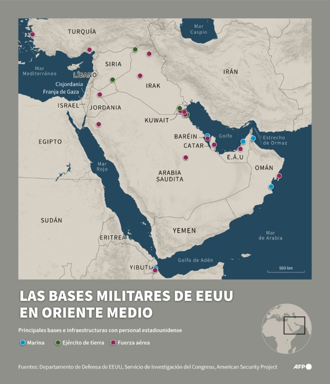 A continuación, la AFP examina las concentraciones más grandes de fuerzas estadounidenses en Oriente Medio, que están bajo el mando del Comando Central de las Fuerzas Armadas de Estados Unidos (CENTCOM).
