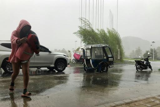 Una turista local llega a buscar refugio a un centro de evacuación en la isla Siargao, Filipinas, el 16 de diciembre de 2021 afp_tickers