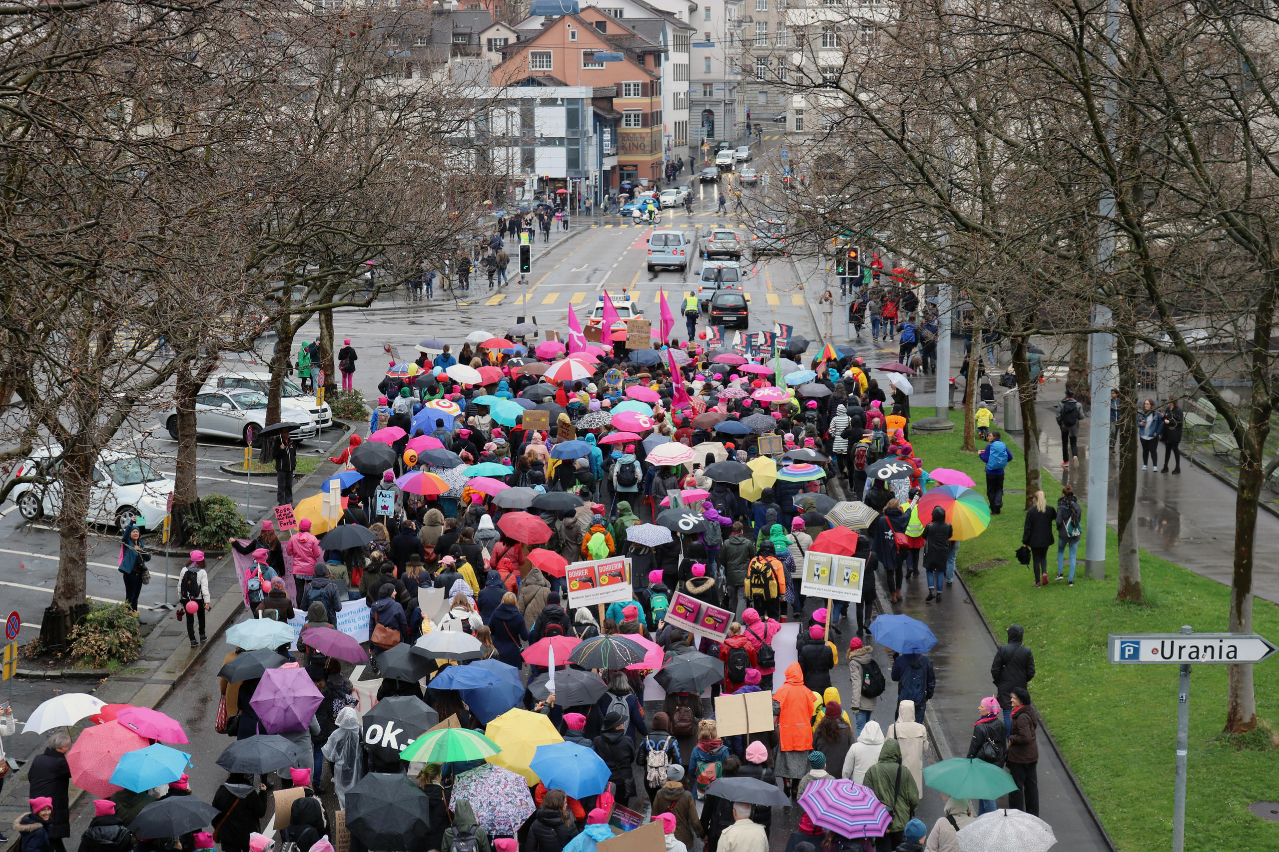 En Suiza, las mujeres expresaron su descontento sobre la situación actual en los negocios con manifestaciones multitudinarias durante el Día Internacional de la Mujer y la Marcha Mundial de las Mujeres por la Dignidad.