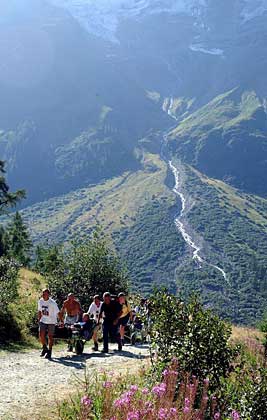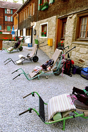 Los aparatos especiales permiten cargar a las personas con alguna incapacidad en caminos accidentados. (Keystone/Olivier Maire)