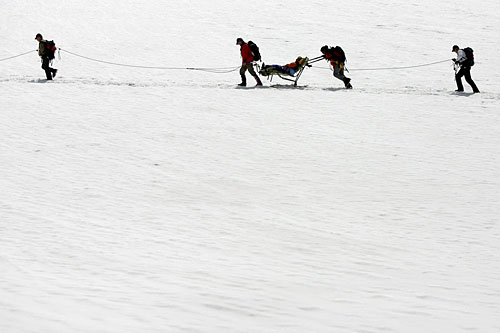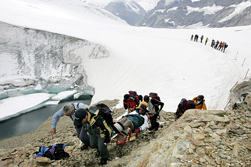 Esta es otra caminata en Kanderfirn, en las montañas bernensas, con 20 participantes. Ocurrió en 2007. (Keystone/Peter Klaunzer)