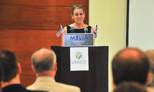 Devry Boughner, presidenta de la Coalición Agrícola de Estados Unidos para Cuba, habla durante una reunión comercial el 2 de marzo de 2015 en La Habana afp_tickers