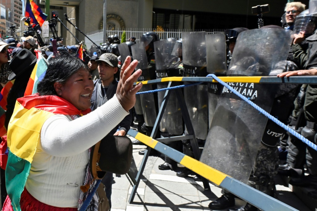 Por segundo día grupos de manifestantes intentaron irrumpir, sin éxito, en la plaza de armas, donde Luis Arce tiene sus oficinas y que permanece fuertemente custodiada por la fuerza pública.