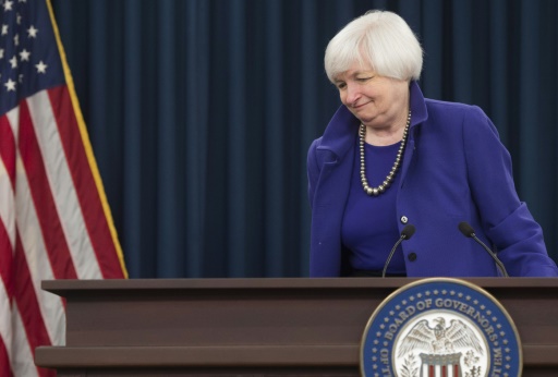 La presidenta de la Reserva Federal estadounidense (Fed), Janet Yellen, tras una rueda de prensa en la que anunció el histórico aumento de las tasas, el primero desde 2006, en Washington el 16 de diciembre de 2015 afp_tickers