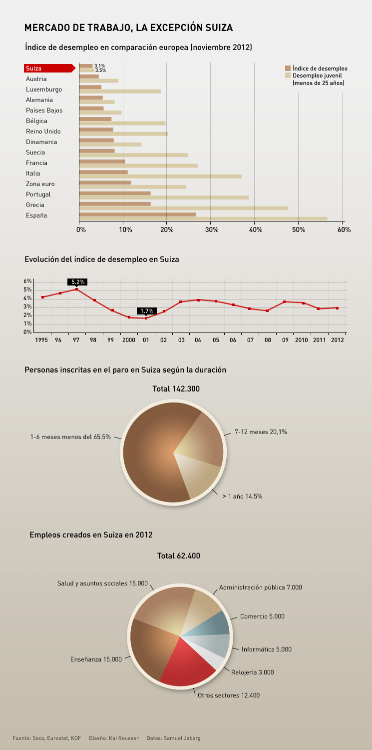 En comparación con sus vecinos europeos, Suiza tiene un índice de desempleo extremadamente bajo. Pese a la difícil situación económica que atraviesan los miembros de la Unión Europea, el país alpino no ha dejado de generar empleos.