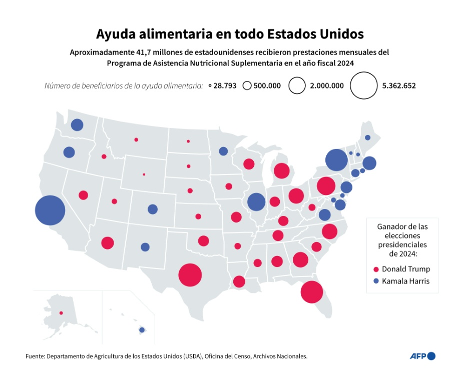 El gobierno utilizará 4.650 millones de dólares de un fondo de emergencia para financiar los pagos relacionados con el programa SNAP, el principal de ayuda alimentaria pública en Estados Unidos, lo que cubrirá aproximadamente «el 50% de las ayudas de los hogares elegibles», afirmó un funcionario del Ministerio de Agricultura en documentos judiciales.