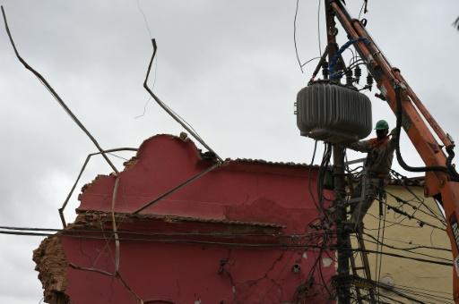 Un empleado de una compañía eléctrica repara la red de alumbrado público dañada luego de una explosión en un barrio de Rio de Janeiro, el 19 de octubre de 2015 afp_tickers