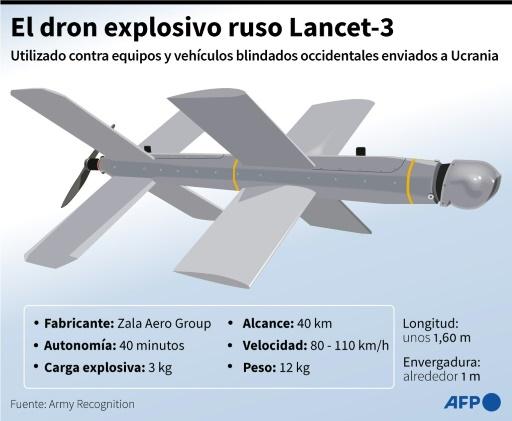«El pequeño dron ruso Lancet se impone como una de las armas preferidas de Moscú para hacer frente al flujo de material adverso, sobre todo haciendo ‘contrabatería dronizada'», afirmó el consultor francés Stéphane Audrand en Twitter.