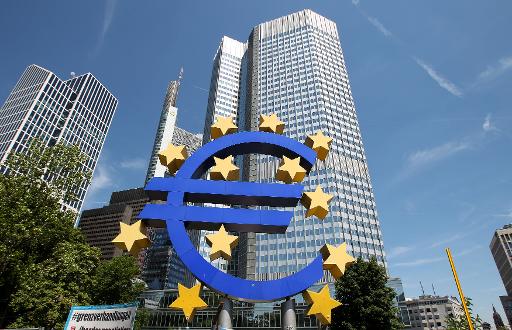 El logotipo de la moneda de la Unión Europea, el euro, en la sede del Banco Central Europeo en Fráncfort (Alemania), el 3 de julio de 2014 afp_tickers