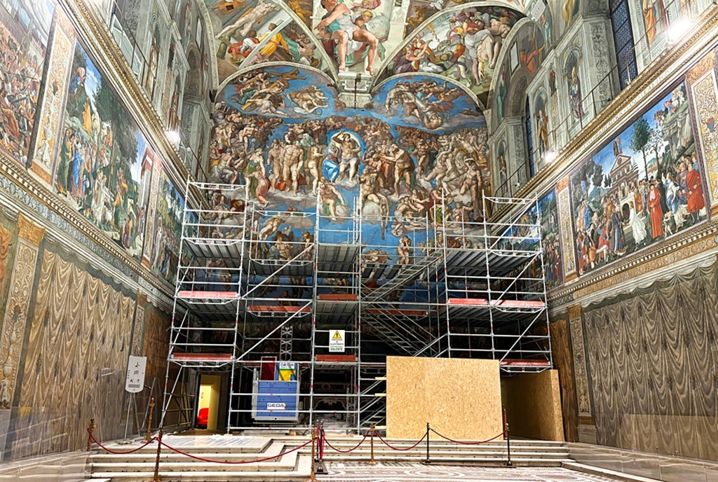 Los visitantes podrán seguir accediendo a la Capilla Sixtina durante la restauración, pero el fresco está oculto tras un gran andamio cubierto con una reproducción de la obra.