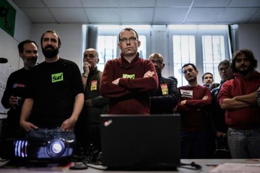 Unos empleados de la compañía estatal de ferrocarriles francesa SNCF escuchan el discurso del primer ministro sobre la reforma del sistema de pensiones el 11 de diciembre de 2019 en París afp_tickers