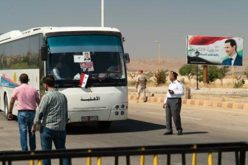 En el puesto de Jdeidat Yabus, en la frontera de Siria con el Líbano, unas 50 mujeres, niños y ancianos descienden de tres autobuses con aire preocupado. Son refugiados, de regreso a Siria tras largos años de exilio, que observan con cierto recelo el recibimiento en gran pompa organizado por funcionarios del gobierno bajo la atenta mirada de militares rusos.