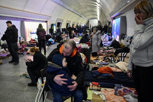 Cerca de ellos, su hijo mayor observa atónito su nueva casa provisional, un pasillo de metro transformado en un gran refugio en el que se encuentran decenas de familias. El más joven permanece pegado a su madre.