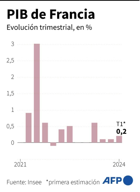 Esta cifra supera la previsión inicial del órgano estadístico, que esperaba un crecimiento nulo, y mejora el rendimiento del último trimestre de 2023, en el que la economía francesa creció un 0,1%.
